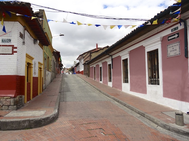 Spending the day wandering around the Candeleria district or old city we strolled its narrow cobbled streets and into the Plaza del Chorro de Quevedo, which is the historic center of the city. The rest of the downtown area of Bogota has a Soviet era feel to the buildings.