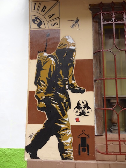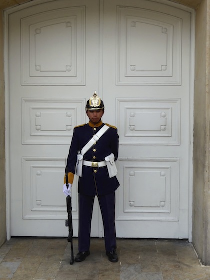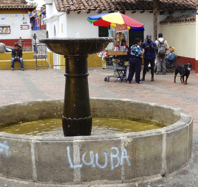 Spending the day wandering around the Candeleria district or old city we strolled its narrow cobbled streets and into the Plaza del Chorro de Quevedo, which is the historic center of the city. The rest of the downtown area of Bogota has a Soviet era feel to the buildings.